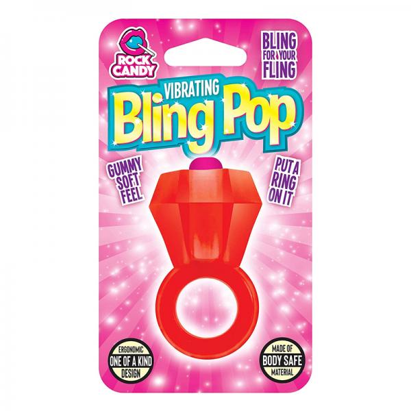 Add a pop of bling to your fling! The one-of-a-kind Rock Candy Bling Pop is a true gem of a cock ring, engineered to pay homage to an iconic candy classic while transforming any sexual adventure into a glistening affair to remember! Slide the supple, stretchy ring down and around the base of the penis (include the testicles, too, if the ring fits!) -- and keep the diamond on top to treat your partner to blissful clitoral stimulation. Flip it upside down for intense external perineum stimulation, or double-loop it on your hand and wear it as a flashy finger vibe! The high-powered single speed motor does double duty, serving up pleasure for two with the simple push of a button. We thickened the density of this material to ensure the ring stays in place and treats the right sweet spots to decadence from start to finish. Slide on it or grind on it...our ultra luxe Bling Pop does what a brilliant diamond does...performs best under pressure! COLOR: RED@np2020-59