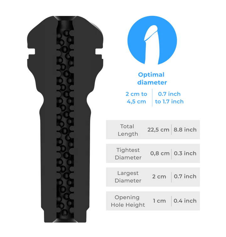 Take your masturbation game to the next level with the FeelSensation stroker. Made from soft, skin-like material with a sleek, non-anatomical entrance to experience the most realistic blowjobs imaginable when paired with the the Keon automatic masturbator or PowerBlow suction device.