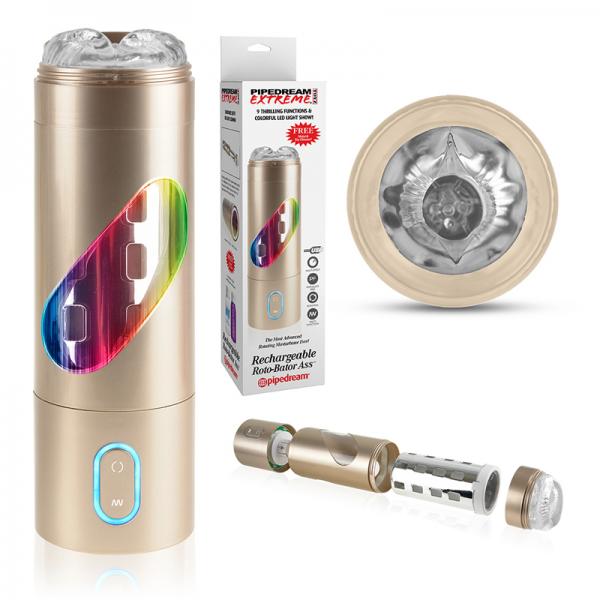 Powered by an ultra strong motor, this masturbator features nine thrilling rotation patterns. Each pattern has a colorful LED light display that changes color with each movement. The reverse oration button instantly changes direction of the spinning pleasure sleeve. To charge the Roto Bator, plug the included USB cord into any USB plug and let it charge for 2 hours. Run time is approximately 1.5 hours per session. The long cylinder and stretchy sleeve can accommodate a wide range of sizes and girths.
