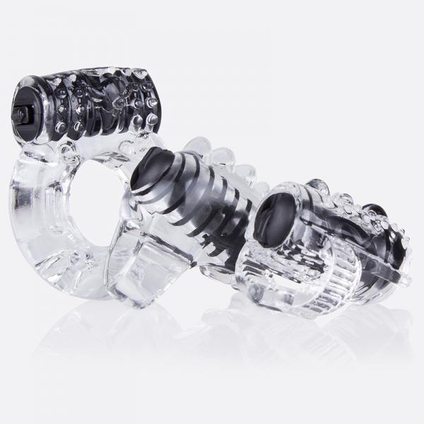 The ultimate sex toy starter kit for couples exploring vibration in all its forms. This convenient collection offers him a 3-point upgrade with three powerful mini vibes designed to stimulate in very different ways. The mini tongue vibe stretches to fit around his tongue to add a vibrating boost to any cunnilingus session. The mini fingertip vibe sits at the end of any finger and makes it easy to tease, tickle and massage every erogenous zone â especially the clitoris to help orgasms come easier during intercourse. And the vibrating ring makes his whole package vibrate thanks to a super-stretchy ring that fits comfortably around his penis and testicles. When worn with the motor sitting on top, he can stimulate her clitoris with every thrust and intensity her pleasure in some of her favorite sex positions.
