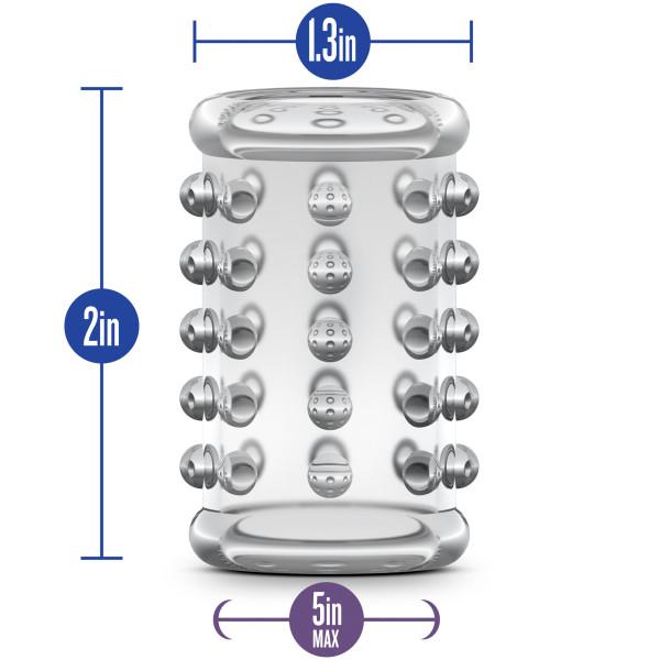 Stretchy and textured enhancement sleeve adds pleasure and sensation. Just slide over your shaft or a dildo. One size fits most. Measures 2.04 inches long, 1.57 inches diameter, 4.92 inches circumference.