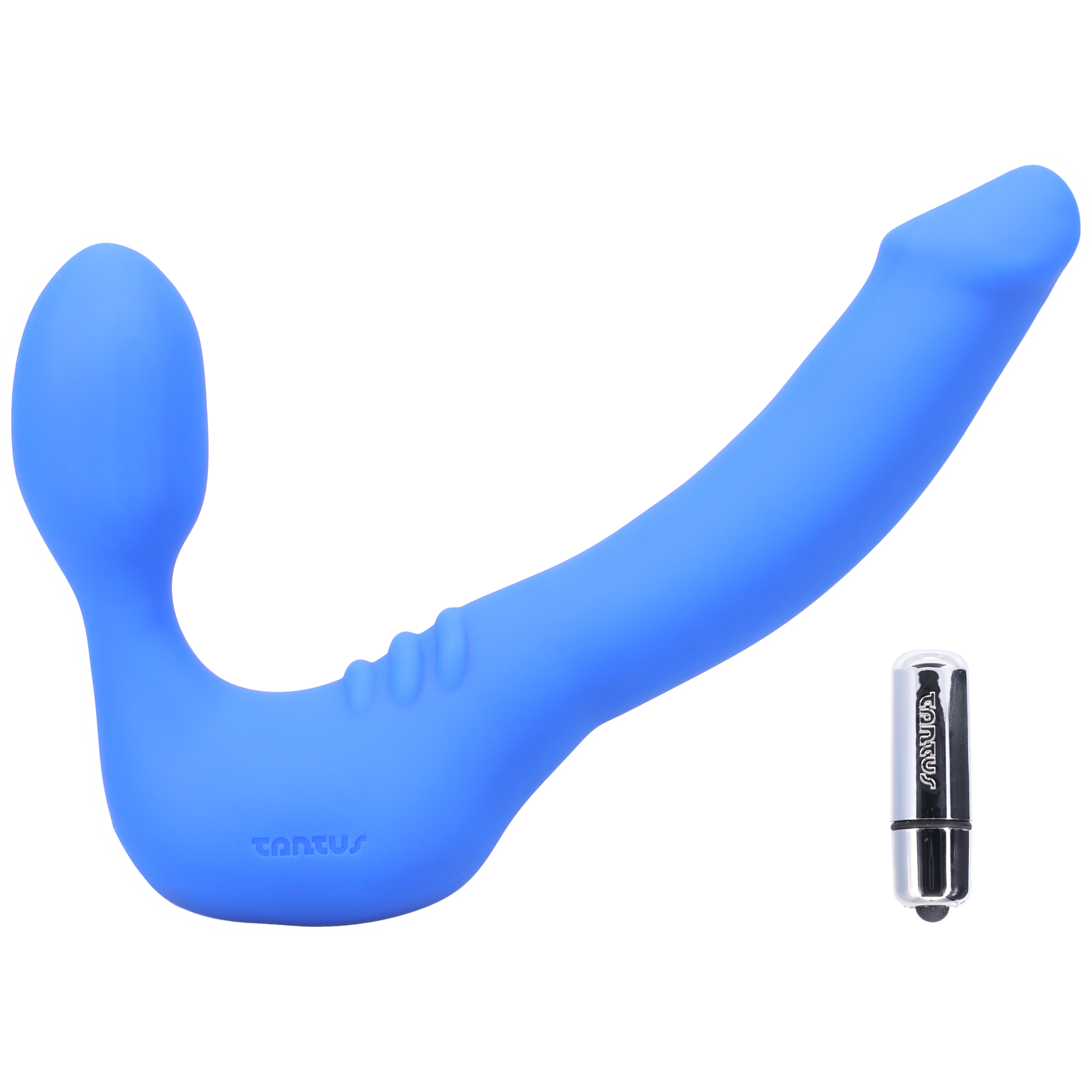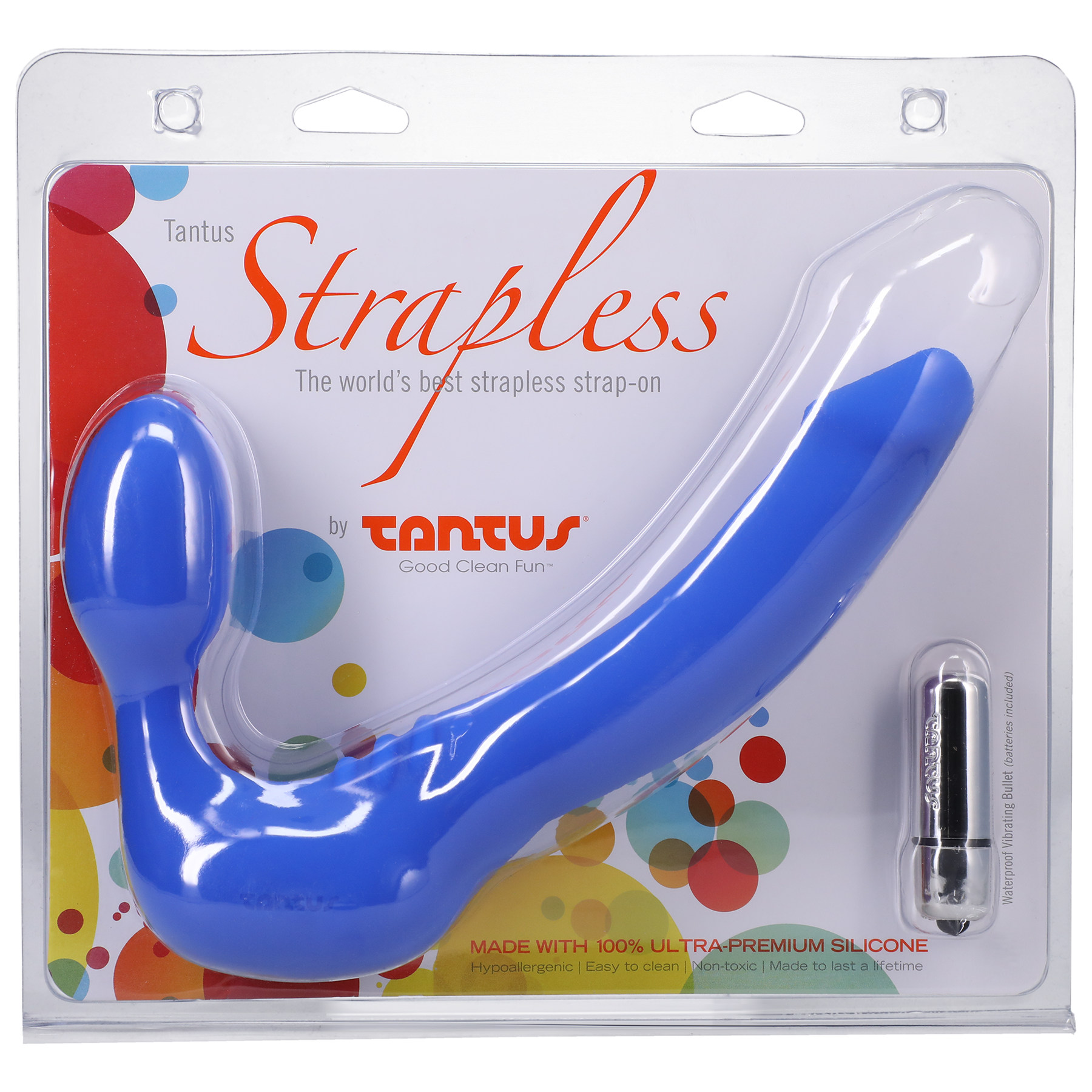 It's a strapless strap-on designed to give skin-on-skin contact without breaking the continuity of action to adjust straps and buckles. It works, by using your internal muscles to hold it in place with the bulb as the shaft protrudes at a natural angle. The Tantus Strapless™ Slim is easier to hold and control than the original; the Slim is 10% lighter than the original model, making it lighter for the wearer.