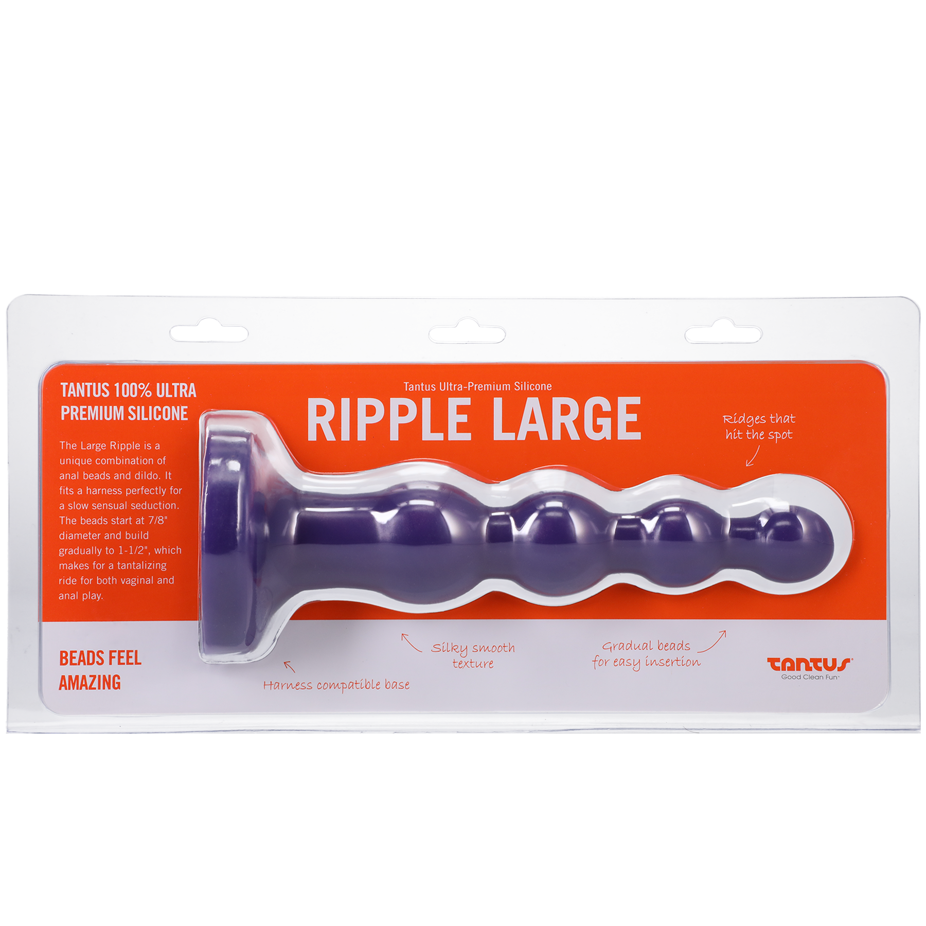 The Large Ripple is a unique combination of anal beads and dildo. It fits a harness perfectly for a slow sensual seduction. The beads start at 7/8" diameter and build gradually to 1-1/2", which makes for a tantalizing ride for both vaginal and anal play.