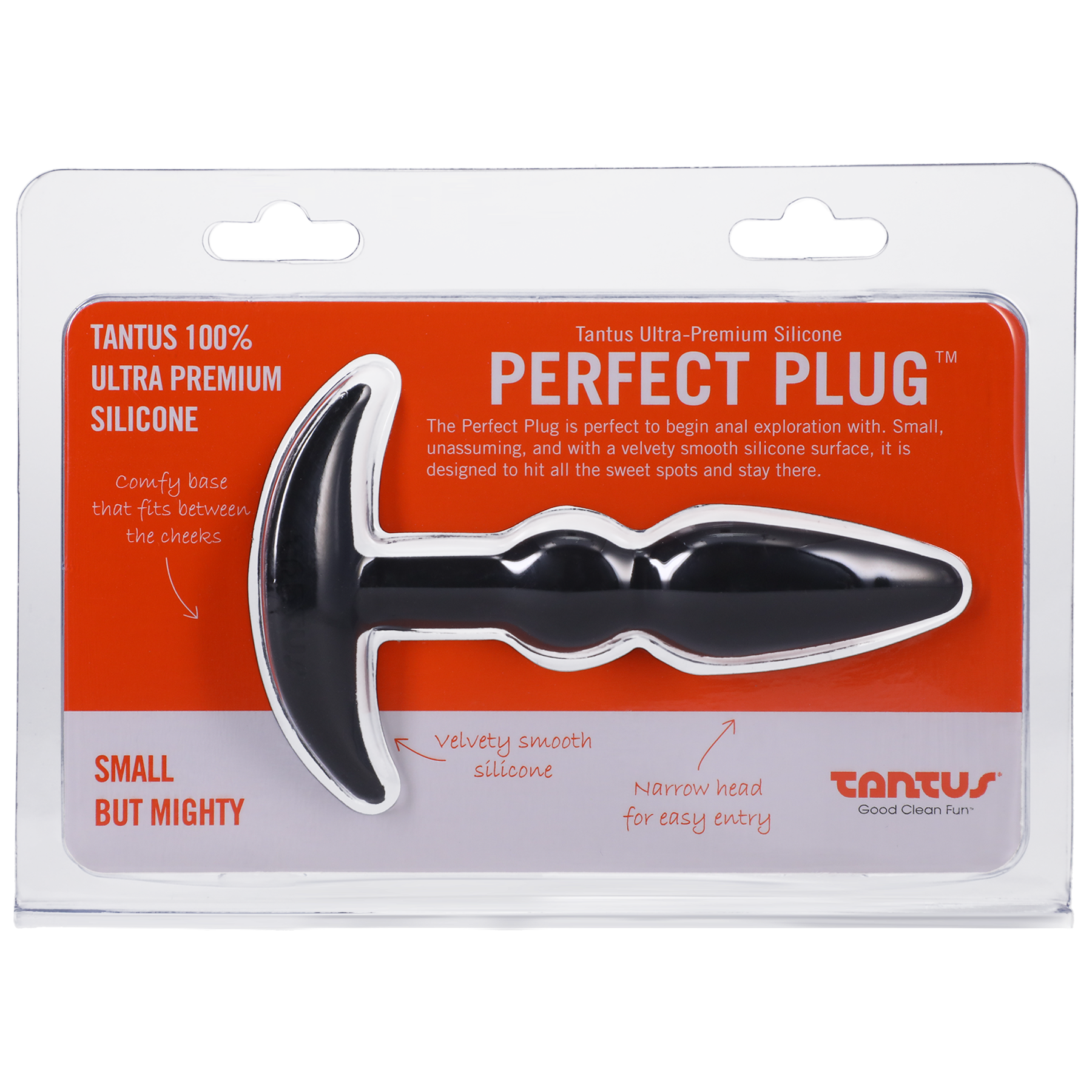 The Perfect Plug's smooth silicone surface has an irresistible velvety feel with a narrow head for easy entry. The long, slender neck is tailored to be easily retainable while the anchor base tapers to fit flawlessly between the cheeks. Only a fingers-width in diameter, it's a plug meant to tickle and please for the early connoisseur or for warming up.